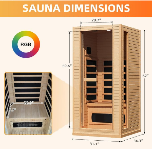 Jeho kompaktní tělo (obvykle měří asi 100 x 80 × 190 cm) je vhodné pro malé prostory, jako jsou domy a byty, a snadno se instaluje a připojuje k použití. Interně vybavené pohodlnými lavičkami a prodyšným designem sítě spojené s inteligentním systémem řízení teploty (nastavitelný teplotní rozsah 30-65 ℃) může být doba stanovena podle potřeb (0-60 minut), vyrovnávání bezpečnosti a pohodlí.