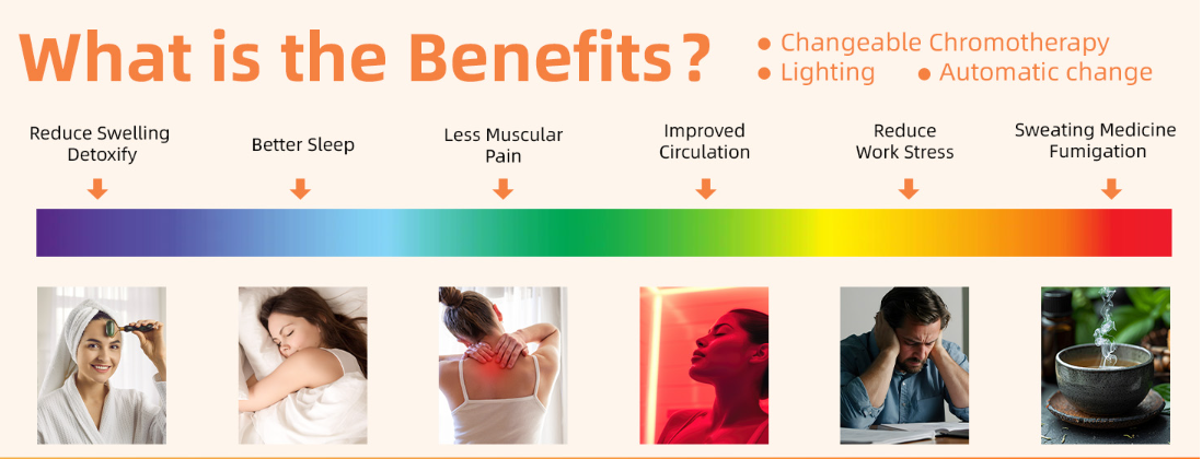 Při použití může far-infračervené záření podporovat krevní oběh, urychlit metabolismus, zmírnit únavu svalů a pomoci eliminovat vlhkost a metabolický odpad z těla, zejména vhodné pro sedavé lidi, sportovní nadšence a ty, kteří věnují pozornost každodennímu zdraví. Ve srovnání s tradičními saunami spotřebovává méně energie (s výkonem asi 800-1200 W), rychle se zahřívá (dosažení nastavené teploty do 10 minut) a nevyžaduje komplexní drenážní systémy. Denní údržba je jednoduchá a poskytuje moderním urbanistům pohodlné a efektivní řešení domácího zdraví.