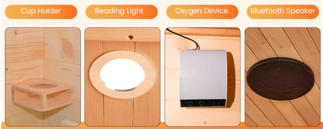 【Bezpečné a spolehlivé】 Naše vnitřní saunové elektrické boxy mají vestavěný elektrický únik a ochranu zkratu, zajišťují bezstarostný provoz a zvýšenou bezpečnost. Naše sauny jsou ověřeny americkými odděleními kvality a certifikovány společností GS, ETL a dalšími organizacemi, aby splňovaly nejvyšší standardy.