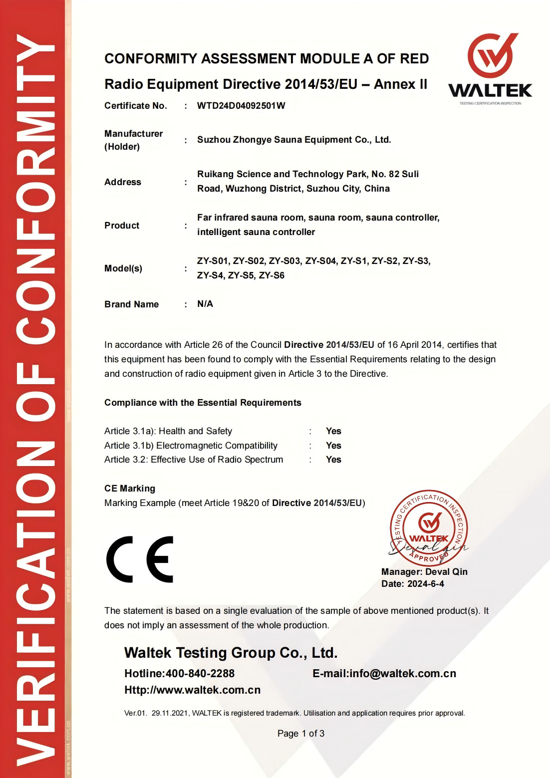1 osoba daleko infračervená sauna--- Kvalifikace produktu