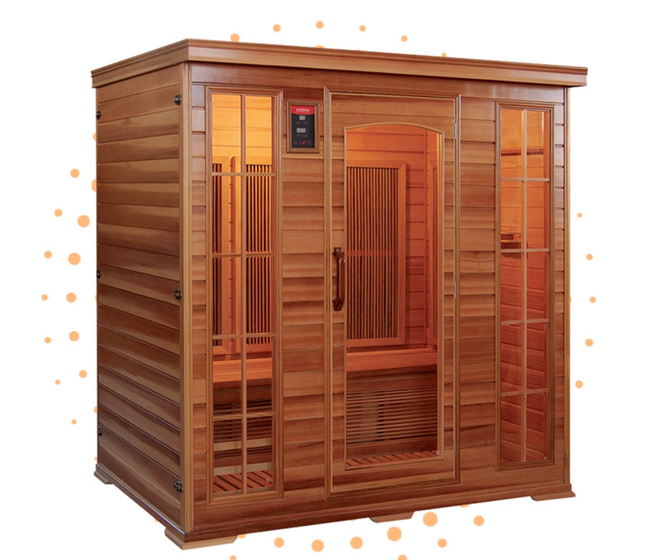 Funkce nastavitelné teploty infračervené sauny z červeného cedru pro 3 až 4 osoby umožňuje uživatelům snadno si přizpůsobit relaxační sezení. Ať už dáváte přednost jemnému, teplému sezení pro odpočinek po dlouhém dni nebo vyšší teplotě pro povzbuzení, infračervená sauna pro 3 až 4 osoby z červeného cedru se přizpůsobí vašim potřebám. Dálkové infračervené vytápění ohřívá přímo tělo (spíše než vzduch), takže se rychleji budete cítit pohodlně a užijete si hlubší relaxaci bez intenzivního tepla tradičních saun.