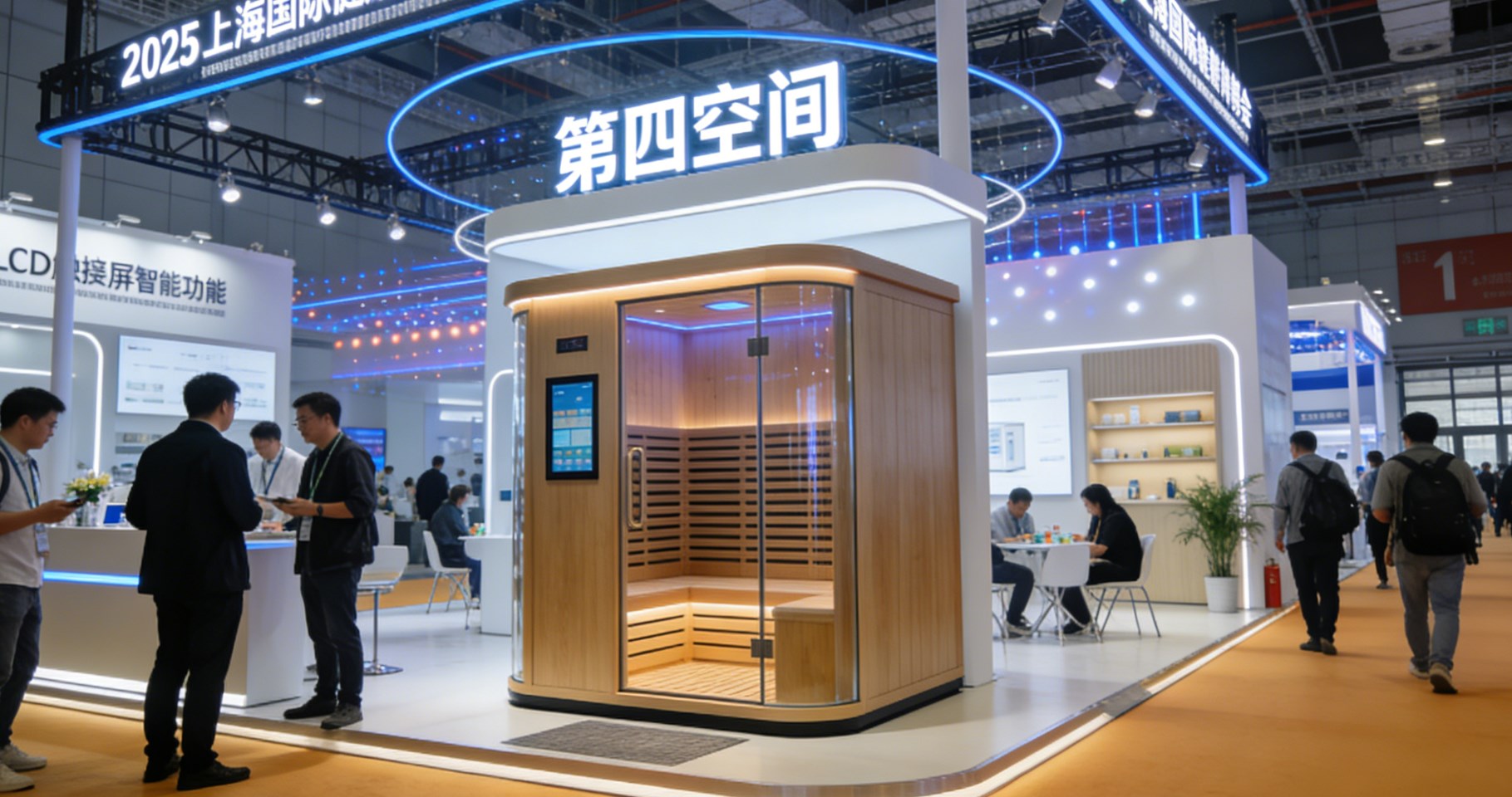 Na nedávno skončeném mezinárodním veletrhu zdraví v Šanghaji v roce 2025 koncept „čtvrtého prostoru“.saunová místnostvystavované společnostmi jako Xuzhou Kangzhiyuan přitáhl pozornost. Výrobek je vybaven dotykovou obrazovkou LCD, rozhraním živého vysílání Tiktok a funkcí úpravy teploty hlasem, která podporuje uživatelem definovanou teplotní křivku a systém vůně (jako je uvolňování esenciálního oleje z citronové trávy při 60 ℃, přepínání cedrové vůně při 80 ℃) a může dokonce propojit inteligentní toaletu pro sledování složení potu.