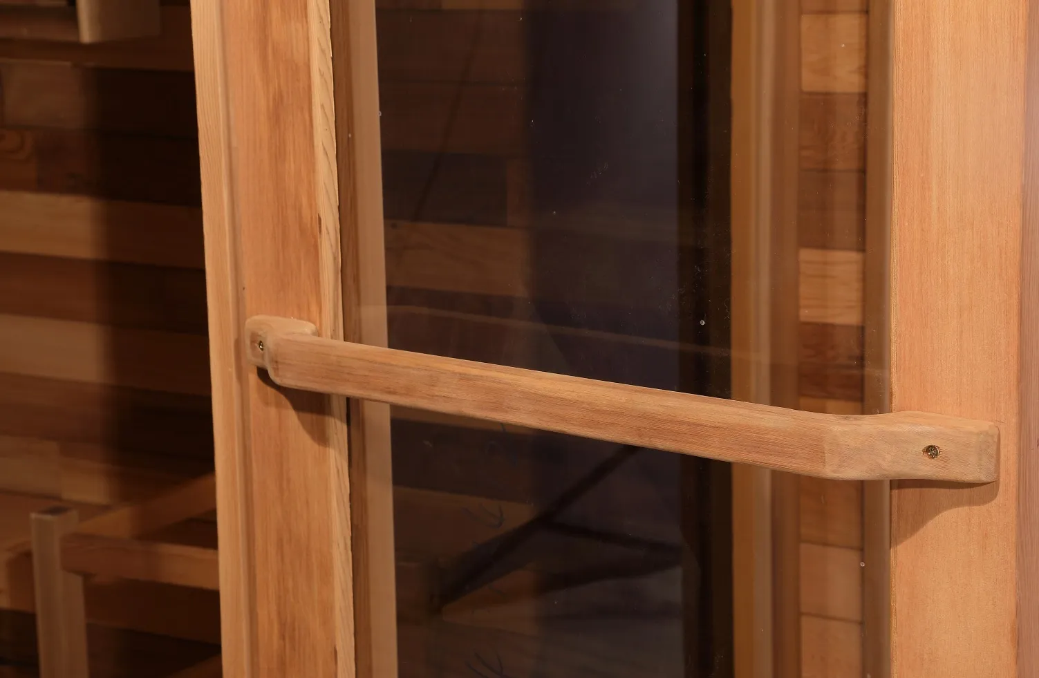 Vyrobeno z vysoce kvalitního přírodního jedlicového dřeva s jemnou a hřejivou kresbou s jemnou přírodní vůní dřeva, která je příjemná na dotek. Materiál prochází profesionální antikorozní úpravou, pyšní se rovnoměrnou hustotou a odolností proti deformaci a praskání. Ať už je vystavena přímému slunečnímu světlu na terase nebo vlhkému prostředí na nádvoří, zachovává si stabilní texturu pro dlouhodobé používání a kombinuje přirozenou estetiku s praktickou odolností a vytváří pro vaše venkovní saunování poklidnou atmosféru inspirovanou lesem.