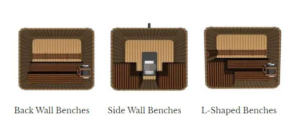 Navrženo s otevřeným interiérem speciálně pro skupinové použití a podporuje tři možnosti uspořádání sedadel: montáž na zadní stěnu, montáž na boční stěnu a ve tvaru L. Přizpůsobí se různým velikostem skupin a zvyklostem používání (snadno se přizpůsobí rodinným setkáním nebo setkáním přátel). Sedadla mají vrstvenou dutou strukturu, která zajišťuje pohodlí při sezení a ležení a zároveň usnadňuje vnitřní cirkulaci vzduchu, díky čemuž je sauna prodyšnější a méně dusná v prostředí s vysokou teplotou.